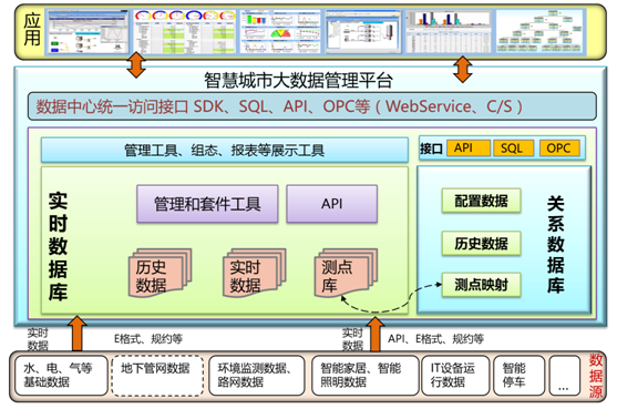 實(shí)時(shí)數(shù)據(jù)庫(kù)作為物聯(lián)網(wǎng)產(chǎn)業(yè)的基礎(chǔ)軟件,能有效支撐智慧城市大數(shù)據(jù)平臺(tái)的高效運(yùn)轉(zhuǎn),使平臺(tái)具有無(wú)限擴(kuò)展上層智慧應(yīng)用的能力,以及無(wú)限擴(kuò)展下層數(shù)據(jù)接入的能力,起到了承上啟下的關(guān)鍵作用,是必不可少的關(guān)鍵部件。